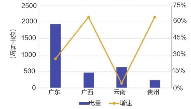 2019年南方各省區(qū)電力零售市場交易電量及增速
