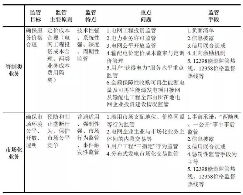 表1 對電網(wǎng)管制類業(yè)務(wù)與市場化業(yè)務(wù)監(jiān)管對比