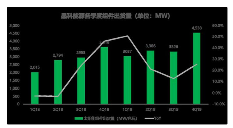 3月13日美股盤前,光伏行業(yè)龍頭公司晶科能源(JKS.US)公布了2019年四季度及全年財(cái)報(bào)。