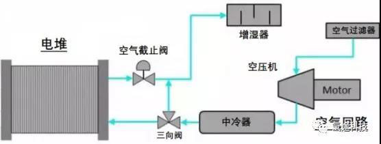 此外,對于目前采用離心式空壓機(jī)的系統(tǒng),還可令其在電堆功率較低時,維持較大的流量,并通入旁通路,可以有效的避免空壓機(jī)喘振現(xiàn)象的出現(xiàn)。