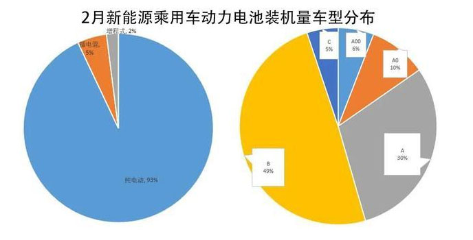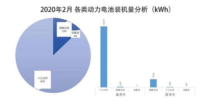 不過造成這一結(jié)果的原因,恐怕是因2月份商用車動力電池裝機量大幅減少所致。在商用車中,2月份磷酸鐵鋰電池裝機量達到92%,而商用車動力電池裝機量卻環(huán)比下降約88%。三元材料電池則占據(jù)乘用車動力電池裝機量的近99%,2月份乘用車動力電池裝機量環(huán)比下滑約70%。