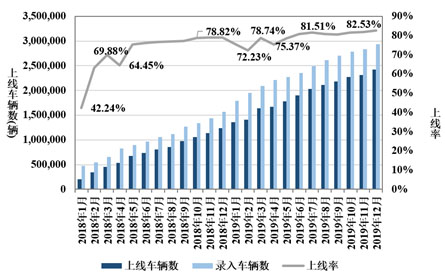 具體來說,客車和專用車的上線率相對比較平穩(wěn),目前均超過85%;乘用車作為目前新能源汽車推廣的主力, 2019年12月上線率比2018年1月增長了40%。