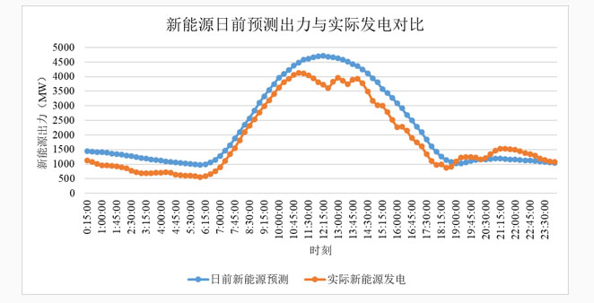 ● 12:15-15:00, 新能源實際發(fā)電小于日前預測,最大偏差 108.7 萬千瓦(12:30)。因新能源發(fā)電缺額,需要調(diào)增火電機組出力,實時現(xiàn)貨市場價格較日前上漲。