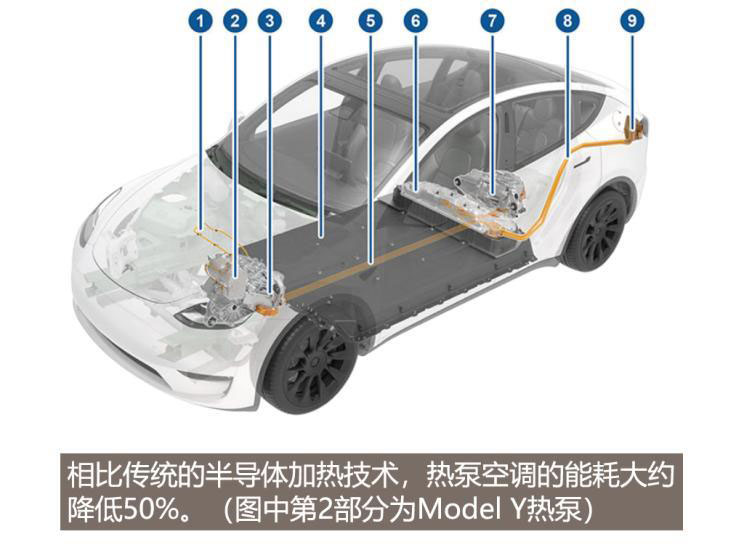 在空調(diào)系統(tǒng)上,Model 3搭載的解決方案是電阻加熱材料的PTC空調(diào),其在通電后可以恒溫發(fā)熱,以達到取暖目的,但在寒冷地區(qū),PTC空調(diào)的能耗偏高,冬季續(xù)航里程將受到較大影響。而Model Y則搭載了熱泵空調(diào),其原理就像抽水機一樣,會把熱量從溫度較高的地方“抽”到溫度較低的地方,不光制熱/制冷效率更高,Model Y的冬季續(xù)航表現(xiàn)也會得到優(yōu)化。