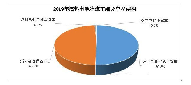 2019年,我國(guó)燃料電池物流車(chē)以總質(zhì)量8-9噸貨廂類廂式運(yùn)輸車(chē)和保溫車(chē)為主,車(chē)長(zhǎng)集中在6.5米到8米之間。相比之前,燃料電池裝配物流車(chē)型除傳統(tǒng)的普通廂式運(yùn)輸車(chē)以外,在對(duì)能源供應(yīng)系統(tǒng)要求較高的半掛牽引車(chē)、冷藏車(chē)等領(lǐng)域也得到應(yīng)用,細(xì)分車(chē)型結(jié)構(gòu)呈現(xiàn)進(jìn)一步豐富,應(yīng)用場(chǎng)景進(jìn)一步擴(kuò)展態(tài)勢(shì)。