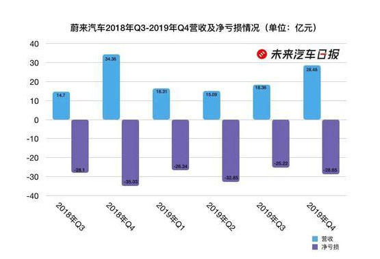 蔚來汽車2018年Q3-2019年Q4營收及凈虧損情況 制圖:未來汽車日報(bào)