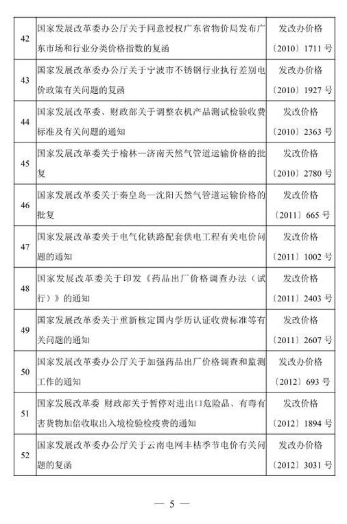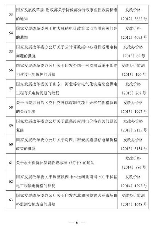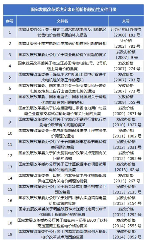 國家發(fā)展改革委決定廢止的價格規(guī)范性文件目錄
