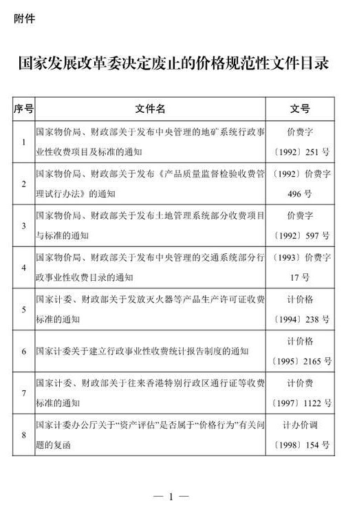 附件:國家發(fā)展改革委決定廢止的價格規(guī)范性文件目錄