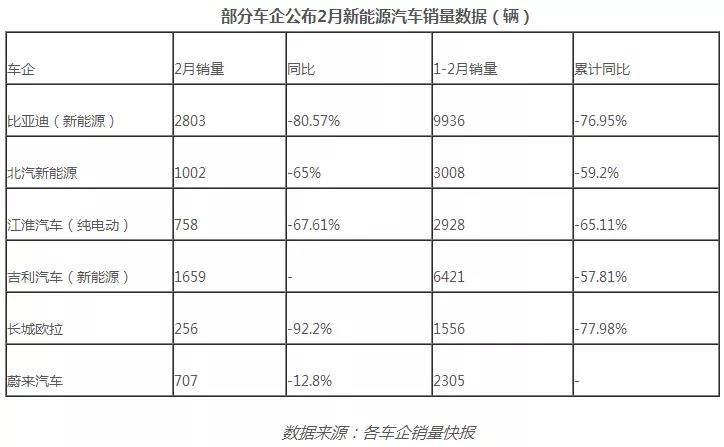 就車企而言,多家車企公布2月新能源汽車銷量數(shù)據(jù),大幅下滑成為車企目前遭遇的共同困境。