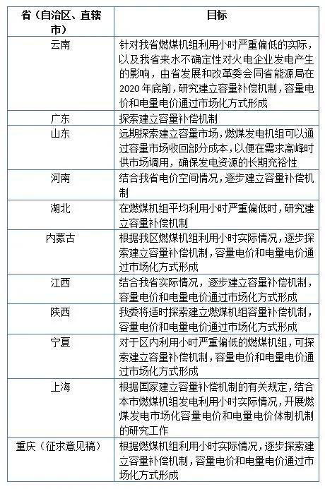 3月17日,云南省發(fā)改委印發(fā)《關(guān)于深化燃煤發(fā)電上網(wǎng)電價(jià)形成機(jī)制改革的實(shí)施方案》,上述方案提出“針對(duì)我省燃煤機(jī)組利用小時(shí)嚴(yán)重偏低的實(shí)際,以及我省來水不確定性對(duì)火電企業(yè)發(fā)電產(chǎn)生的影響,由省發(fā)展和改革委會(huì)同省能源局在2020年底前,研究建立容量補(bǔ)償機(jī)制,容量電價(jià)和電量電價(jià)通過市場(chǎng)化方式形成?!?