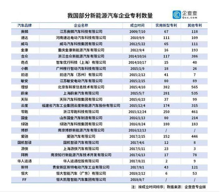 如此多的新能源車(chē)企,他們的科研實(shí)力到底如何呢?我們從專利數(shù)量方面來(lái)一窺究竟。企查查數(shù)據(jù)節(jié)選了25家新能源汽車(chē)相關(guān)企業(yè)的專利數(shù)據(jù),其中實(shí)用新型專利數(shù)量和其他專利數(shù)量最多的企業(yè)均為北京車(chē)和家信息技術(shù)有限公司,分別為382件和565件,其次是蔚來(lái)汽車(chē)。實(shí)用新型專利數(shù)量超過(guò)百件的企業(yè)共有8家,占取樣企業(yè)總數(shù)的32%。