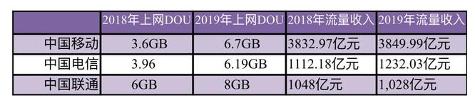 三大運(yùn)營(yíng)商傳統(tǒng)業(yè)務(wù)在過(guò)去的一年并未有明顯改善,在即時(shí)通訊APP及提速降費(fèi)政策的影響下,運(yùn)營(yíng)商流量、語(yǔ)音、短信等業(yè)務(wù)收入全面下降。
