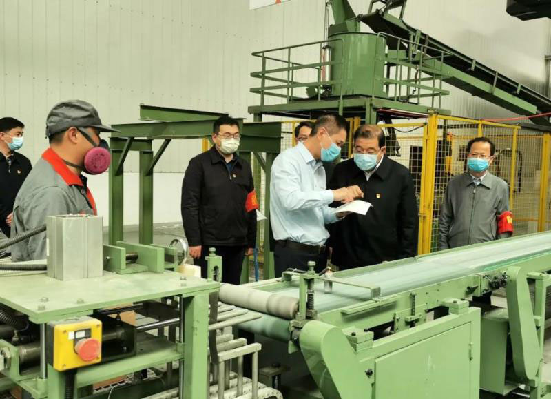 王立書記一行深入生產(chǎn)一線,實(shí)地查看了生產(chǎn)情況。武漢南都總經(jīng)理徐根財(cái)匯報(bào)了公司疫情防控和復(fù)工情況。