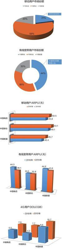 從三大運(yùn)營商的財報來看,2019年,我國電信市場格局發(fā)生變化。