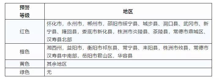 懷化市,永州市,郴州市,邵陽市綏寧縣、城步縣、洞口縣、武岡市、新寧縣、隆回縣,婁底市新化縣,株洲市炎陵縣、茶陵縣,常德市鼎城區(qū)、漢壽縣北部被劃分為紅色預(yù)警區(qū)域共計涉及14個市縣區(qū),暫停項目核準(zhǔn)和下達(dá)新增建設(shè)計劃。