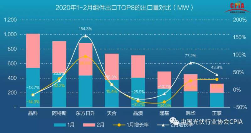 【美國(guó)】1-2月組件出口規(guī)模已超400MW,而2019年全年的出口規(guī)模僅260MW左右?;仡?019年的美國(guó)市場(chǎng),2019年美國(guó)光伏市場(chǎng)新增裝機(jī)13.3GW,同比增長(zhǎng)23%。近期,美國(guó)能源部的能源信息管理局(EIA)發(fā)布了對(duì)2020年美國(guó)太陽(yáng)能市場(chǎng)的裝機(jī)預(yù)測(cè):到2020年,美國(guó)將安裝13.4 GW的公用事業(yè)規(guī)模的太陽(yáng)能和5.1GW的小型太陽(yáng)能,將較2019年再增加95%。組件進(jìn)口方面,2019年上半年,馬來(lái)西亞、越南、韓國(guó)和泰國(guó)占美國(guó)光伏組件進(jìn)口量的近85%。總計(jì)93%的進(jìn)口來(lái)自亞洲國(guó)家,只有1%來(lái)自中國(guó)。貿(mào)易壁壘方面,進(jìn)口雙面組件的201關(guān)稅在2019年6月宣布豁免,沒(méi)過(guò)多久在10月份又宣布取消了雙面組件的關(guān)稅豁免,但12月再次宣布豁免201關(guān)稅。雖然美國(guó)制造商可以在6個(gè)月內(nèi)將單面電池和組件生產(chǎn)線轉(zhuǎn)換為雙面生產(chǎn)線,但考慮到雙面組件已豁免并可以從中國(guó)進(jìn)口,因此不會(huì)選擇產(chǎn)線轉(zhuǎn)換,如此一來(lái)美國(guó)雙面組件顯然供應(yīng)不足,仍然需要大量進(jìn)口。所以今年我國(guó)出口美國(guó)的組件中基本都會(huì)是雙面組件。然短期內(nèi)面臨的是美國(guó)疫情持續(xù)惡化,恐不利于新訂單的促成。1-2月該地區(qū)組件市場(chǎng)出口額占比前五的企業(yè)分別為東方日升(47.6%)晶科(26.4%)、正泰(16.8%)、晶澳(5.4%)、天合(1.6%)。