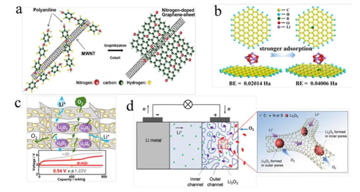 圖7 雜原子摻雜缺陷在鋰-氧電池電極材料中的應(yīng)用
