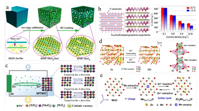 圖4 陽(yáng)離子缺陷在金屬離子電池電極材料中的應(yīng)用