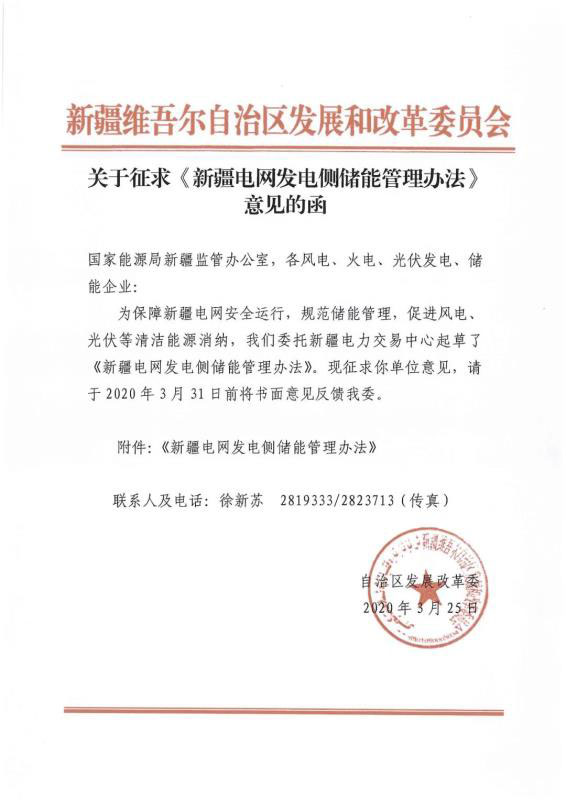《新疆電網(wǎng)發(fā)電側(cè)儲能管理辦法》意見征集發(fā)布 補償標(biāo)準(zhǔn)0.55元/千瓦時