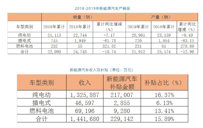 2019年,公司新能源汽車銷量22090輛,其中燃料電池汽車232輛,收入6.92億元,補貼占比13.41%(如下圖)。