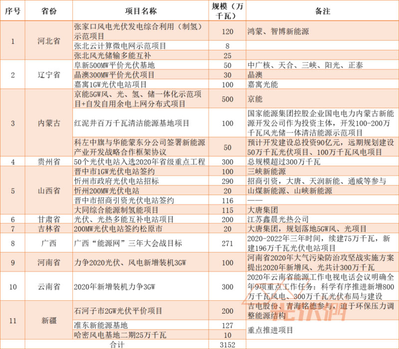 近日,光伏們統(tǒng)計(jì)了截止目前各省2020年的重點(diǎn)簽約項(xiàng)目、重點(diǎn)工程以及各項(xiàng)規(guī)劃中的涉光伏項(xiàng)目,11省光伏規(guī)劃規(guī)模已經(jīng)超過31GW。隨著“十三五”收官之年的到來以及光伏電力成本的下降,更多的省份對光伏的態(tài)度悄然發(fā)生了轉(zhuǎn)變。消納能力的改善、煤電落后產(chǎn)能的淘汰以及非水配額制的出臺,也成為光伏發(fā)電的“助推劑”。