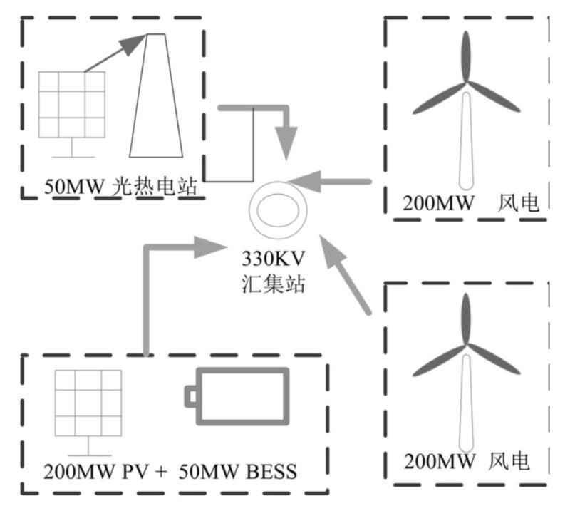 魯能海西州多能互補(bǔ)示范工程項(xiàng)目包含風(fēng)電400MW、光伏200MW、光熱50MW以及儲(chǔ)能50MW,總規(guī)模裝機(jī)700MW。其中風(fēng)電、光伏、光熱通過(guò)35kV集電線路接入110kV升壓站送至330kV匯集站并網(wǎng)。