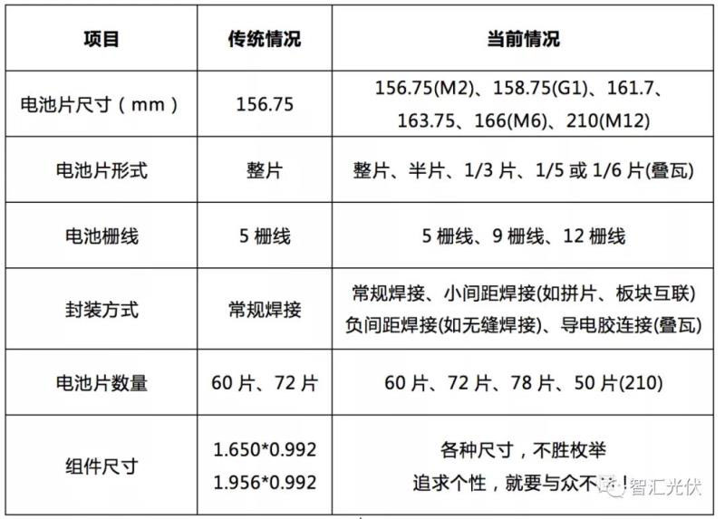 傳統(tǒng)組件電池片尺寸、形式、封裝方式都比較單一,因此無(wú)論哪家企業(yè)的組件,基本都是兩種標(biāo)準(zhǔn)尺寸;