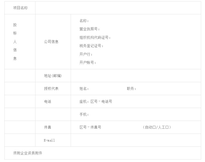 注:為了確保信息準(zhǔn)確無誤,請投標(biāo)人將此表格下載到電腦上,用黑體三號字認(rèn)真填寫表格中的每一項信息,如聯(lián)系方式錯誤或缺失而導(dǎo)致投標(biāo)失敗,一切后果均由投標(biāo)人承擔(dān)。