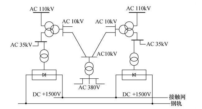 城市軌道交通供配電系統(tǒng)是一個高度集成化和自動化的系統(tǒng),獨立供軌道交通使用,其典型供配電結(jié)構(gòu)如圖4所示。圖4中顯示,當(dāng)前軌道交通變配電所中低壓側(cè)采用DC1500V和AC380V兩種電壓等級,分別為軌道交通牽引變和普通生活供用電。隨著國家提出智能交通和綠色交通的概念,傳統(tǒng)的軌道交通變配電所已不能滿足新型軌道交通發(fā)展理念,難以實現(xiàn)對系統(tǒng)合理用能的精準分析。