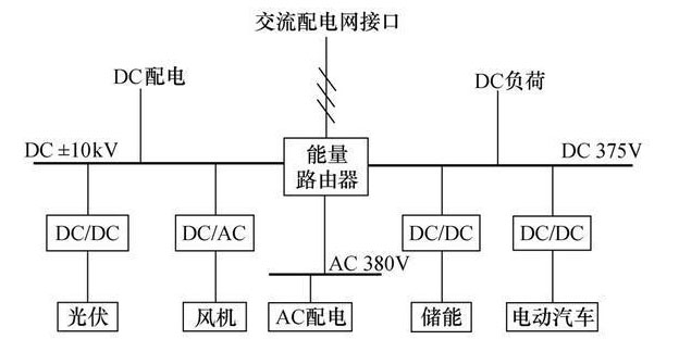 當(dāng)前為了實現(xiàn)智能微電網(wǎng)與大電網(wǎng)協(xié)同接入、和諧交互,通常將分布式電源通過逆變器逆變?yōu)榻涣麟娊尤胂到y(tǒng)交流母線,電池單元也經(jīng)過雙向變流器逆變?yōu)榻涣麟娊尤胂到y(tǒng)交流母線,逆變器等并網(wǎng)設(shè)備雖然在技術(shù)層面一定程度上解決了分布式電源接入難的問題,但是大量的逆變裝置和智能微電網(wǎng)控制器會帶來大量諧波電流,并使系統(tǒng)功耗增加,引起配電、監(jiān)控、保護等方面的問題,這無疑增加了其建設(shè)成本和建設(shè)周期,增加了維護成本。