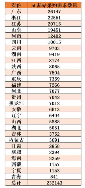 3月6日,中國移動(dòng)全國28省分公司發(fā)布2020年5G二期無線網(wǎng)主設(shè)備集中采購公告,共涉及232143個(gè)5G基站的采購需求。
