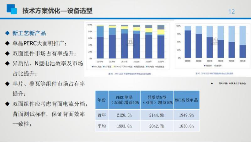 除容配比測算外,光伏系統(tǒng)設(shè)計(jì)方案優(yōu)化還應(yīng)盡可能采用先進(jìn)設(shè)備高效組件進(jìn)行降本以收益最優(yōu)進(jìn)行競價(jià)方案測算,結(jié)合綠色設(shè)計(jì)與全生命周期考慮,并采用光伏+的方式,利用先進(jìn)商業(yè)模式彌補(bǔ)項(xiàng)目的損失等。