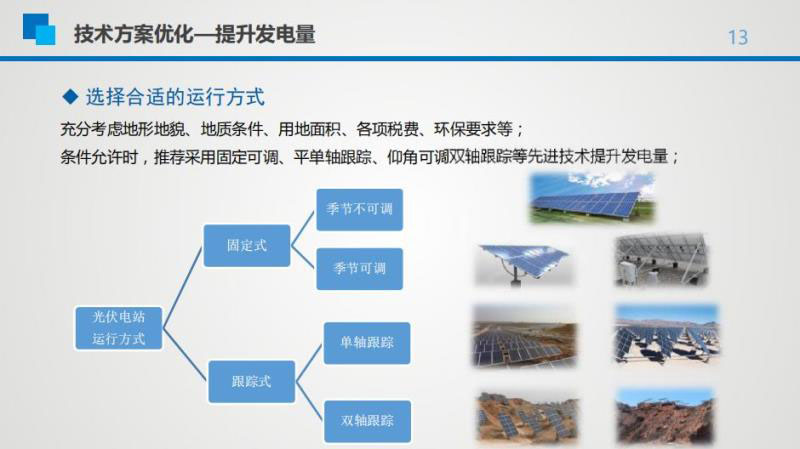 實(shí)際轉(zhuǎn)換效率才是真正提升發(fā)電量的指標(biāo),因此在先進(jìn)技術(shù)選型上應(yīng)更多關(guān)注實(shí)際轉(zhuǎn)換效率。據(jù)惠星介紹,在降低度電成本方面,高功率組件特別適合地形平坦的地區(qū)。設(shè)備成本占比越低,土地及土地相關(guān)各項(xiàng)稅費(fèi),土建原材料價(jià)格、鋼材、水泥等成本占比越高,高功率組件的綜合降本效果越好。此外,在選擇支架合適的運(yùn)行方式時(shí),應(yīng)充分考慮項(xiàng)的目地形地貌、地質(zhì)條件、用地面積能否有效率用、各項(xiàng)稅費(fèi)占比、環(huán)保要求是否嚴(yán)苛等。條件允許時(shí),推薦采用固定可調(diào)、平單軸跟蹤、仰角可調(diào)雙軸跟蹤等先進(jìn)技術(shù)提升發(fā)電量。