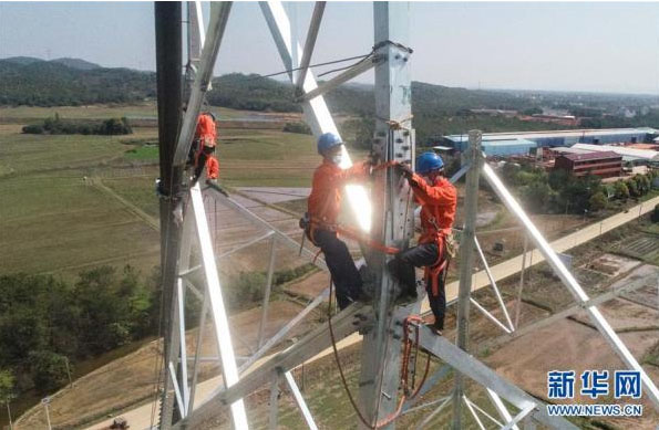 3月20日,在江西撫州市東鄉(xiāng)區(qū),工作人員在組立鐵塔(無人機照片)。 近日,雅中至江西±800千伏特高壓直流輸電工程(江西段)第一基鐵塔在江西撫州市東鄉(xiāng)區(qū)加緊施工。據(jù)介紹,該工程起于四川省涼山彝族自治州鹽源縣雅中換流站,途經(jīng)5省,落點為江西省撫州市東鄉(xiāng)區(qū)南昌換流站。工程設計輸送容量800萬千瓦,計劃在2021年建成投運。 新華社發(fā)(涂賽龍 攝)