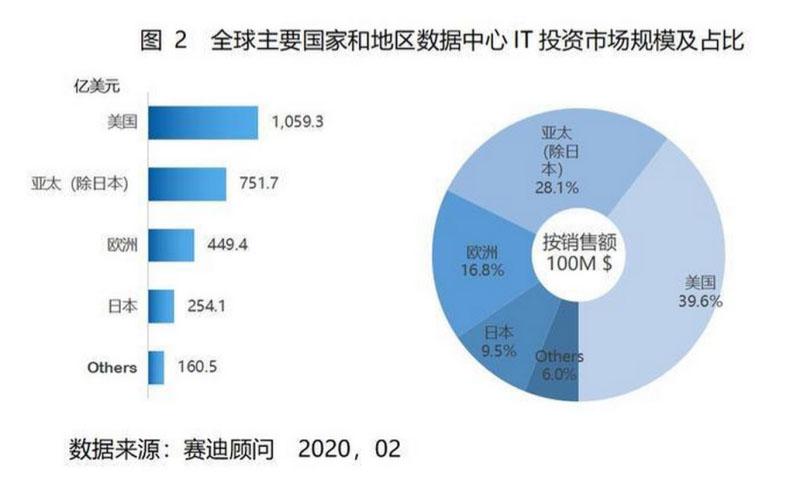 從全球數(shù)據(jù)中心建設(shè)發(fā)展來(lái)看,世界前三大數(shù)據(jù)中心市場(chǎng)——美國(guó)、日本和歐洲的數(shù)據(jù)中心IT投資規(guī)模仍占全球數(shù)據(jù)中心IT投資規(guī)模的60%以上,美國(guó)保持市場(chǎng)領(lǐng)導(dǎo)者地位,在數(shù)據(jù)中心產(chǎn)品、技術(shù)、標(biāo)準(zhǔn)等方面引領(lǐng)全球數(shù)據(jù)中心市場(chǎng)發(fā)展。亞太市場(chǎng)仍是全球數(shù)據(jù)中心市場(chǎng)的亮點(diǎn),與2018年同期相比增長(zhǎng)達(dá)到12.3%,數(shù)據(jù)中心IT投資規(guī)模達(dá)到751.7億美元,主要?jiǎng)恿θ詠?lái)自中國(guó)數(shù)據(jù)中心市場(chǎng)穩(wěn)步發(fā)展,移動(dòng)互聯(lián)網(wǎng)、云計(jì)算、大數(shù)據(jù)、人工智能等應(yīng)用深化,互聯(lián)網(wǎng)+,人工智能x,工業(yè)互聯(lián)網(wǎng)建設(shè)加速。