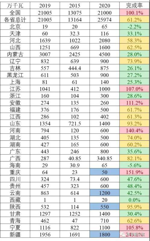 2、2019年剛好實(shí)現(xiàn)十三五全國總量目標(biāo),各省自定的風(fēng)電發(fā)展目標(biāo)完成率僅有61%。