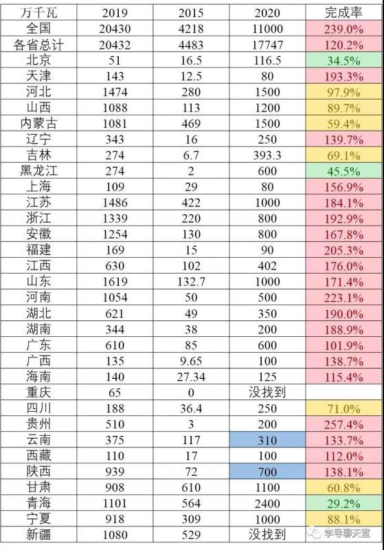 國家和各個(gè)省份都會(huì)制定“能源十三五規(guī)劃”,本文查閱了各省發(fā)布的能源十三五規(guī)劃,整理了各省自己制定的風(fēng)電、光電發(fā)展目標(biāo),并對(duì)比2019年的實(shí)際情況,來看各省風(fēng)、光發(fā)展完成率。