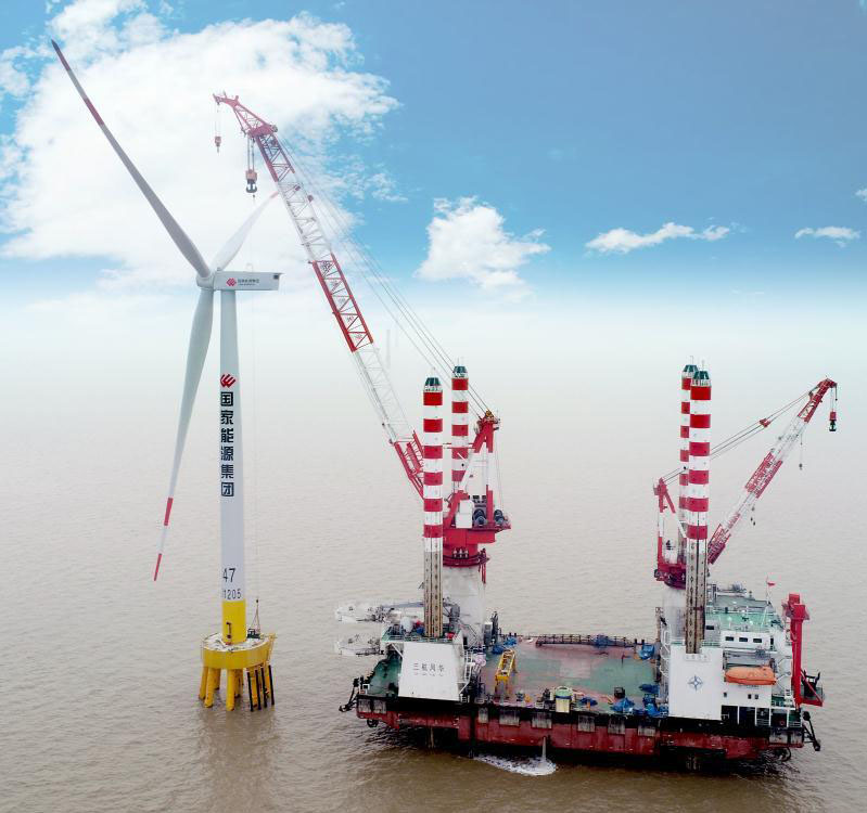 東臺(tái)海上風(fēng)電項(xiàng)目位于江蘇東臺(tái)北條子泥海域和竹根沙海域,總投資約79億元,是國(guó)家能源集團(tuán)成立后首個(gè)海上風(fēng)電項(xiàng)目,是目前我國(guó)已投產(chǎn)發(fā)電離岸最遠(yuǎn)的海上風(fēng)電項(xiàng)目之一,是現(xiàn)階段國(guó)內(nèi)綜合施工難度最高的海上風(fēng)電場(chǎng)項(xiàng)目,多項(xiàng)指標(biāo)創(chuàng)同行業(yè)領(lǐng)先水平。全部投入運(yùn)營(yíng)后,預(yù)計(jì)東臺(tái)四期和五期項(xiàng)目年發(fā)電量13.9億千瓦時(shí),可滿足近兩百萬(wàn)居民的年用電需求,相當(dāng)于節(jié)省標(biāo)煤44.19萬(wàn)噸,減排二氧化碳93.75萬(wàn)噸、二氧化硫1704噸。