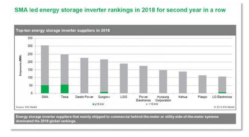 IHS Markit于2019年8月發(fā)布《2019全球儲(chǔ)能逆變器(PCS)分析報(bào)告》,在報(bào)告中公布了其對(duì)儲(chǔ)能逆變器行業(yè)的年度調(diào)查結(jié)果和預(yù)測(cè),SMA憑借出色的、覆蓋全球的儲(chǔ)能逆變器出貨量及裝機(jī)量,繼續(xù)蟬聯(lián)全球儲(chǔ)能逆變器行業(yè)第一品牌。