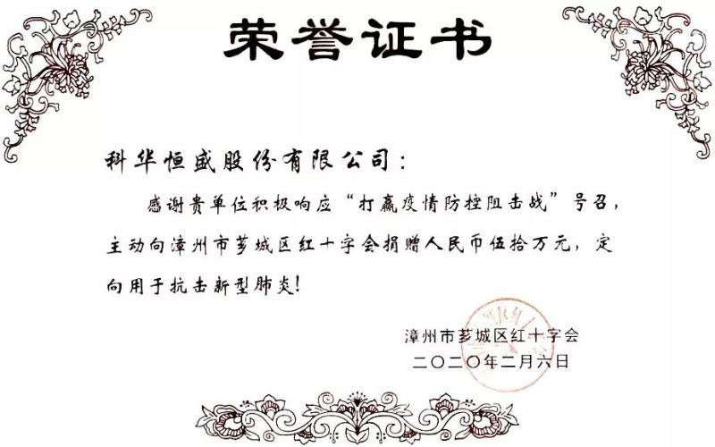 當(dāng)前,疫情防控的狙擊戰(zhàn)正處于關(guān)鍵時(shí)期,舉國上下高度重視,也時(shí)刻牽動著科華人的心。為馳援新型冠狀病毒肺炎疫情防控工作,2月6日科華恒盛股份有限公司及其全資子公司漳州科華技術(shù)有限責(zé)任公司向廈門市紅十字會、漳州市薌城區(qū)紅十字會捐贈共計(jì)200萬元現(xiàn)金。后續(xù),公司將根據(jù)抗擊疫情的需求捐贈我司產(chǎn)品設(shè)備并提供解決方案,全力支持抗擊新型冠狀病毒感染的肺炎疫情,切實(shí)履行上市公司社會責(zé)任。