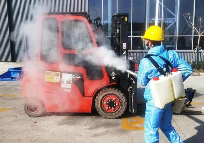 ▲2月20日中午12:45,遠景能源EHS同事給基地的“寶貝叉車”消毒,洗干凈了再上崗。防疫細節(jié)決定復(fù)工安全。遠景能源完善的防疫體系成為鹽城市“復(fù)工樣板”。