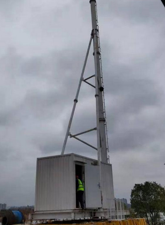 第二個(gè)新建基站采用35米塔房一體化塔型建設(shè),在關(guān)鍵時(shí)刻可大幅縮短施工周期。25日14時(shí)30分,塔房等材料到達(dá)火神山醫(yī)院現(xiàn)場(chǎng),建設(shè)人員馬上投入第二處新建基站的施工中。平整地面、吊裝鐵塔機(jī)房、調(diào)測(cè)設(shè)備……于26日完成了第二座新建基站的鐵塔和配套設(shè)施新建任務(wù),等待運(yùn)營(yíng)商掛裝設(shè)備。