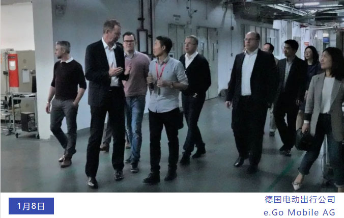 1月8日,德國電動出行公司e.Go Mobile AG創(chuàng)始人兼CEO Prof. Dr. Günther Schuh、 CTO Mr. Rudolf Stefan、采購高管等一行8人蒞臨普瑞賽思光明實驗室參觀考察,這是e.Go Mobile AG最近幾個月第二次參觀普瑞賽思實驗室。這次,考察團(tuán)深入了解了普瑞賽思電性能、可靠性、安全測試能力,并就振動測試新國標(biāo)等信息做深入交流。