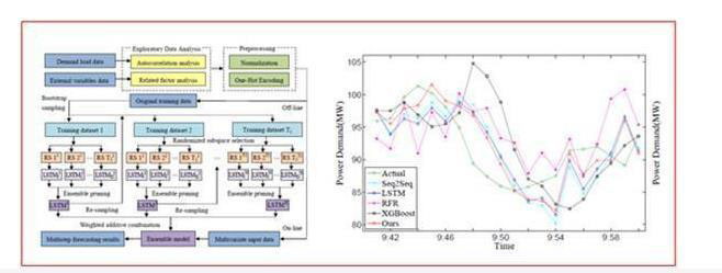 短期/超短期負荷影響因素多、不確定性強,預(yù)測精度不足,給能源經(jīng)濟低碳調(diào)度帶來挑戰(zhàn),甚至危及系統(tǒng)安全運行。為攻克這一難題,課題組提出了一種基于深度集成學習的高精度預(yù)測方法,模型精度和穩(wěn)定性均超當前主流先進的時序預(yù)測方法。方法經(jīng)AEMO開放數(shù)據(jù)集和工業(yè)實測數(shù)據(jù)驗證,已應(yīng)用于與華菱湘鋼合作研發(fā)的智能需量控制系統(tǒng)中。研究成果《基于LSTM混合集成學習的超短期工業(yè)電能需量預(yù)測》(Ultra-short-term industrial power demand forecasting using LSTM based hybrid ensemble learning)發(fā)表在《IEEE電力系統(tǒng)匯刊》(https://ieeexplore.ieee.org/document/8946642),該刊是能源與電力系統(tǒng)領(lǐng)域公認的頂尖學術(shù)期刊。