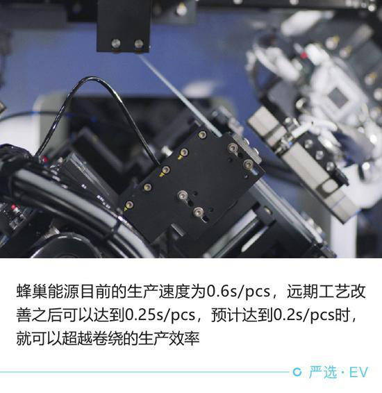 此前無(wú)論是方形還是圓柱電芯,都采用卷繞設(shè)計(jì),工藝成熟,生產(chǎn)效率高。不過(guò)卷繞也存在密度不夠高、對(duì)空間利用不夠(特別是方形電芯)的缺點(diǎn),所以方形疊片電池應(yīng)運(yùn)而生,但是疊片工藝的生產(chǎn)效率相對(duì)較低,脫胎于長(zhǎng)城動(dòng)力電池部門(mén)的蜂巢能源就率先打造了高速疊片方形電池生產(chǎn)線(xiàn)。