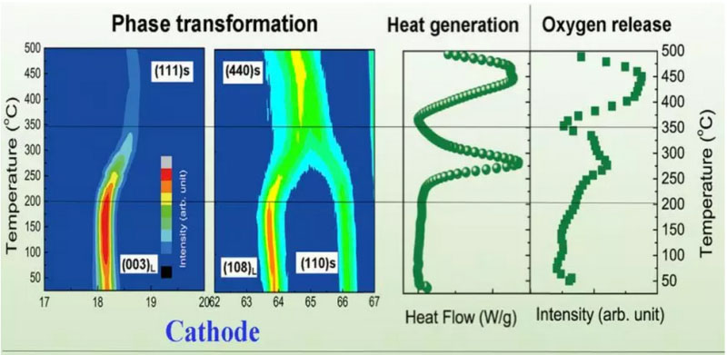 此外,在對特征溫度的對應機理進行研究過程中,他們發(fā)現(xiàn)商品化NCM/C鋰離子電池熱失控過程中主要的熱源來自于正負極在高溫下的氧化還原反應而不是之前普遍認為的電池內短路。