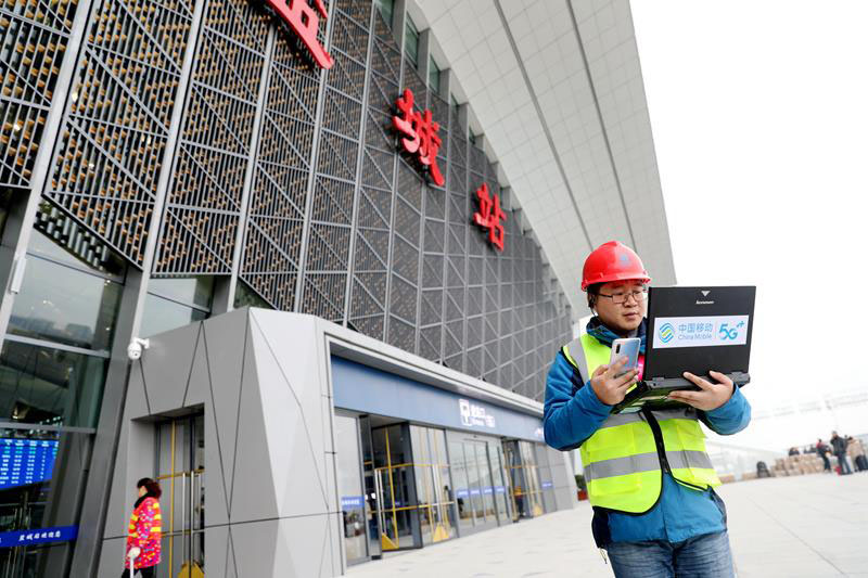 移動(dòng)員工在鹽城站核對5G網(wǎng)絡(luò)覆蓋數(shù)據(jù)
