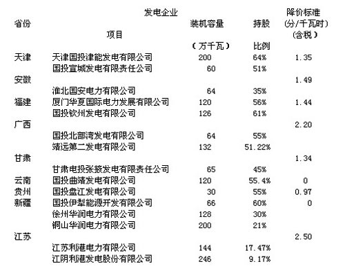 根據(jù)國家發(fā)展改革委通知,公司燃煤機(jī)組所在省份的上網(wǎng)電價調(diào)整情況如下: