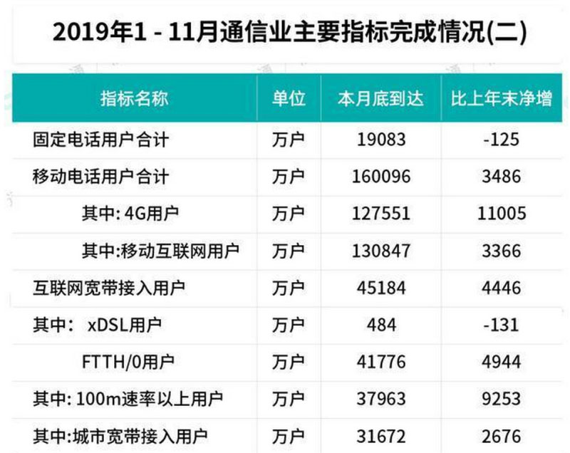 三大運(yùn)營(yíng)商的移動(dòng)電話用戶已經(jīng)超過16億戶,遠(yuǎn)超全國(guó)14億的人口總量。實(shí)際上,移動(dòng)電話用戶突破人口規(guī)模限制后,仍然保持了多年的持續(xù)正向增長(zhǎng)。按照工業(yè)和信息化部公布的最新數(shù)據(jù),截至2019年11月份,移動(dòng)電話普及率已經(jīng)高達(dá)114.7部/百人,這個(gè)數(shù)據(jù)在2019年又增長(zhǎng)了2.5部/百人。