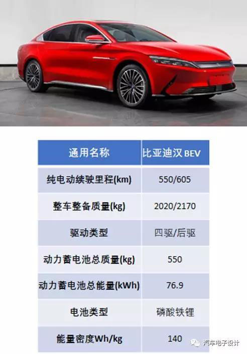 備注:漢EV 有兩種不同的配置,單電機(163 kW)和雙電機(前 163 kW,后 200 kW)2種動力類型。并且漢BEV是明確首款使用刀片電池+磷酸鐵鋰的方案。